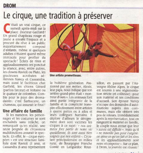 Décembre 2010, La Montagne Centre France : voir page actualités du Cirque